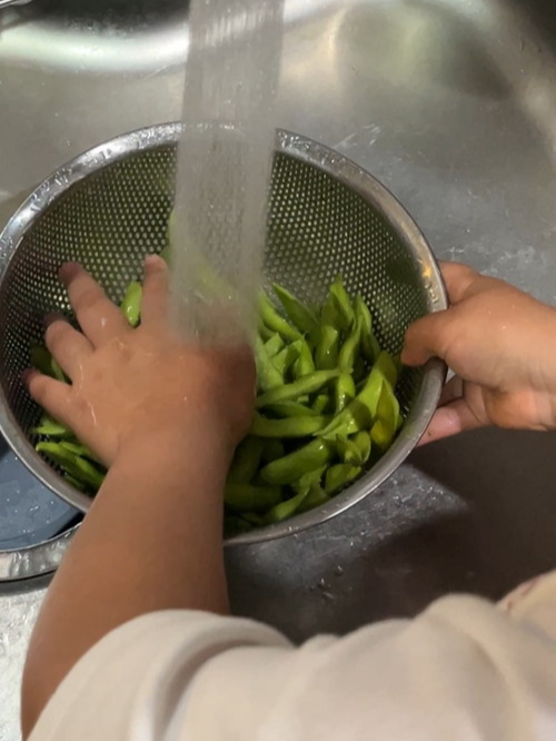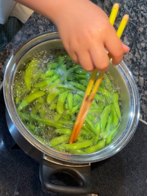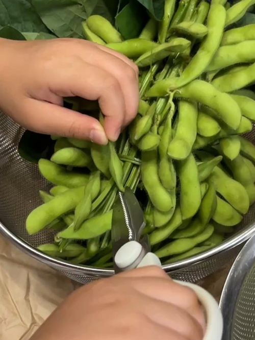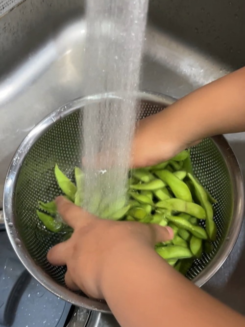 팁 : 삶기 전, 꼬투리 양쪽 끝을 살짝 잘라내면 소금 간이 더 잘 배어들어 맛이 좋습니다!