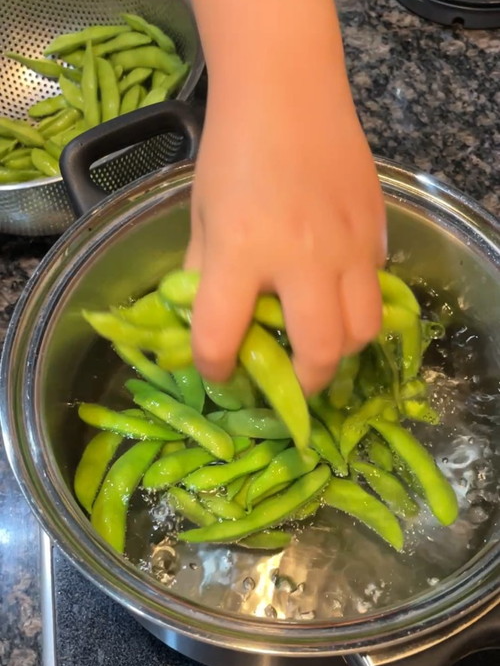 - 시간 조절 : 꼬투리가 선명한 초록색으로 변하고 콩알이 부드러워질 때까지 삶습니다. 생 에다마메는 4~5분, 냉동 에다마메는 2~3분 정도가 적당합니다. (너무 오래 삶으면 물러지고 색이 탁해지니 주의!)